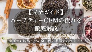 ハーブティーのOEM製造では、コンセプト設計・ブレンド開発・パッケージデザイン・食品表示の作成・製造管理など、いくつもの工程が関わります。 全体の流れを把握せずに進めてしまうと、 「思っていた仕上げりにならない。」「在庫 […]