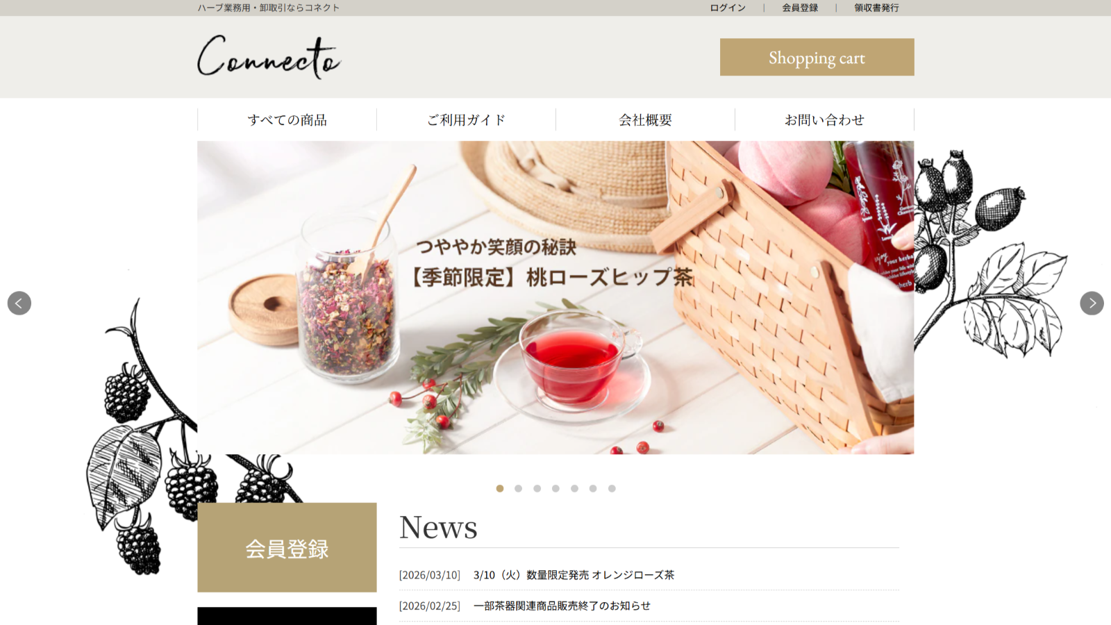 connecto(コネクト)は、ハーブティーブランド「enherb」を展開する株式会社コネクト(サントリーウエルネスの100%子会社)が運営する、法人・個人事業主向けの業務用取引専用サービスです。
